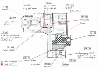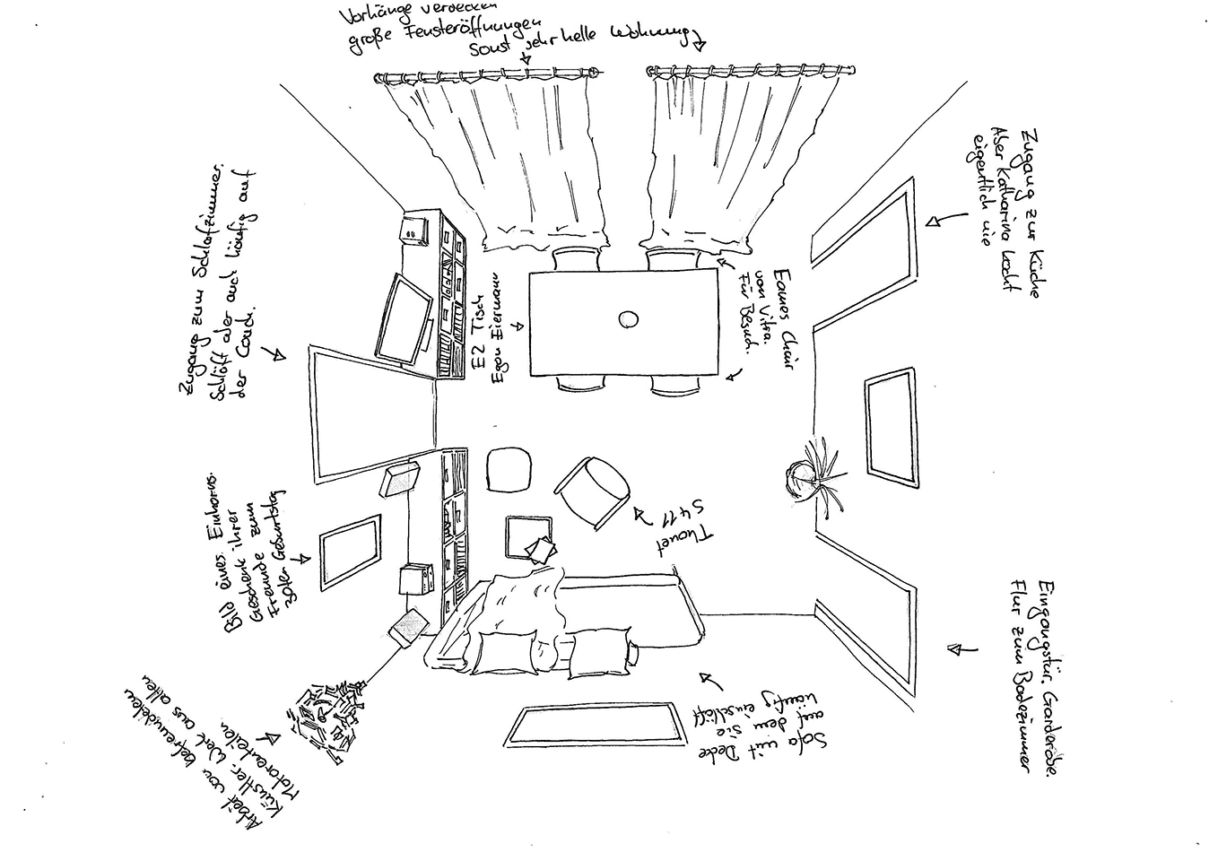 02.1.2 Zeichenstudie: Zeichnet eine Karte des Zuhauses eures Solos. Versucht Eure Erfahrungen und Wahrnehmung in einen interpretatorischen Grundriss zu übersetzen