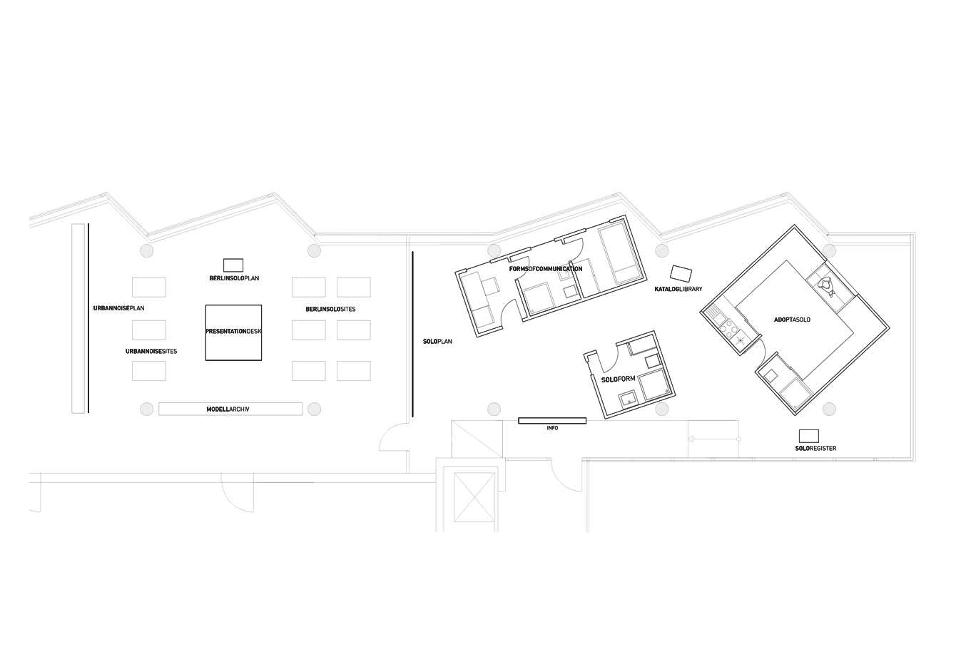 Die Drei gebauten Wohnprototypen stammen aus dem Grundrisskatalog für Micro Appartments, Den sich die Bachelorstudierenden von „Berlin Solo“ in einem Workshop gemeinsam erarbeitet haben.