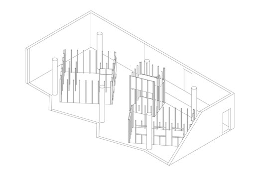 Zweiter Themenbereich: Das Archiv im Nebenstudio werden alle Arbeiten der letzten zwei Semester in einem Archiv ausgestellt. Der Besucher ist eingeladen, die Einzelnen Projekte genauer zu studieren und sie miteinander zu vergleichen .