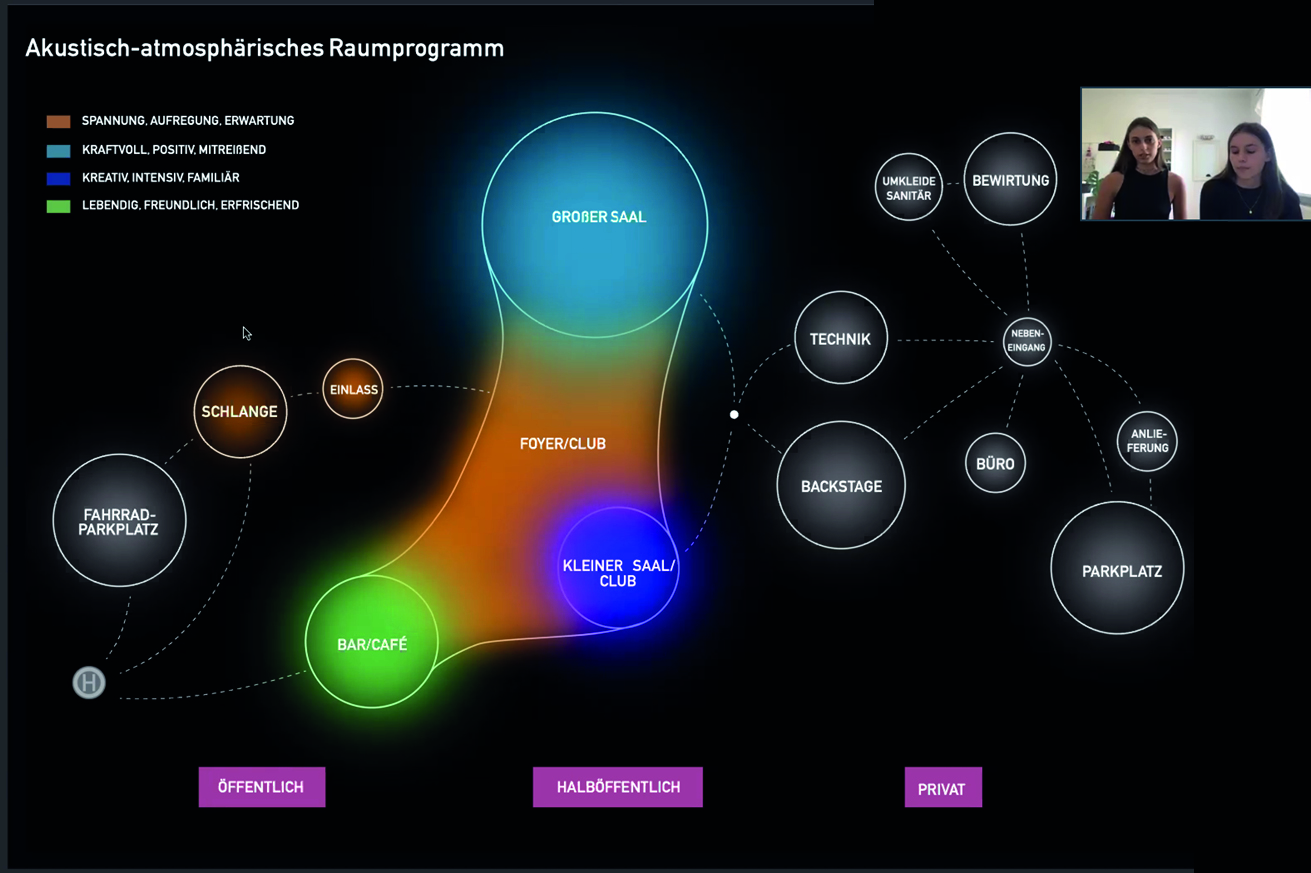 es wird laut. die 1. zwischenpräsentation richtet den fokus auf neue musikorte in berlin - die bachelorstudent*innen haben im 1. block eigene atmosphärische konzepte erstellt und diese in akustisch - atmosphärische raumprogramme übersetzt. mit besonders vielseitigen und spannenden ideen wurden die verschiedenen grundstücke bespielt und wir starten umso gespannter in den 2. block..