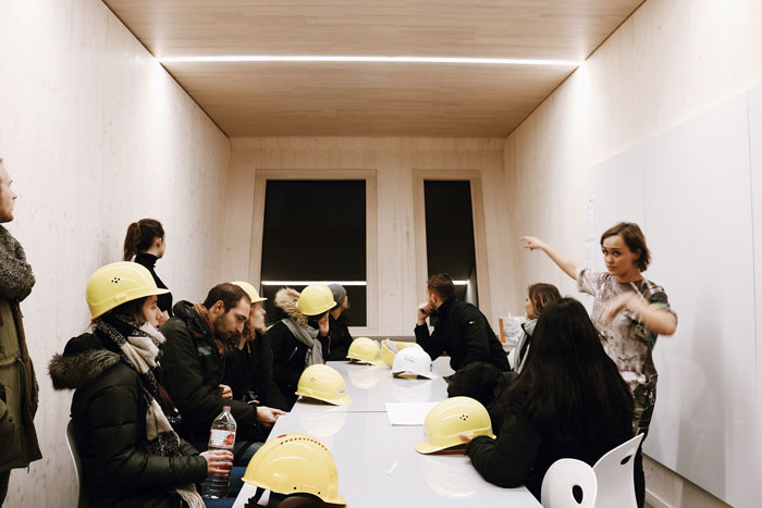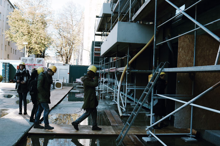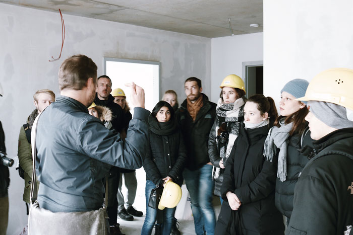 bei der baustellenbesichtigung erhalten die teilnehmer des seminars einblicke in die umsetzung von plänen und details in die realität. die architekten und planer sind mit vor ort, führen durch die baustellen und berichten von logistischen herausforderungen, technischen problemen und ihren lösungen.