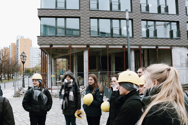dieses jahr stand dabei zunächst der holzbau im fokus. dazu besuchten die studierenden wohnungsbauprojekte am schmollerplatz in treptow (zanderroth architekten) sowie aM Pistoriusplatz (kaden + lager). im anschluss wurde ein baugruppen-projekt an der lindenstrasse 91 (ibeb ifau mit heide & von beckerath) sowie die erweiterung des schulgebäudes der metropolitain school an der linienstrasse 122 (sauerbruch hutton) besichtigt. wir bedanken uns bei den architekten für die spannenden einblicke und die auseinandersetzung mit interessierten und kritischen fragen. Vielen dank an burkhard köhler und christian roth, markus lager, christoph SCHMIDT und jennifer o'donnell.