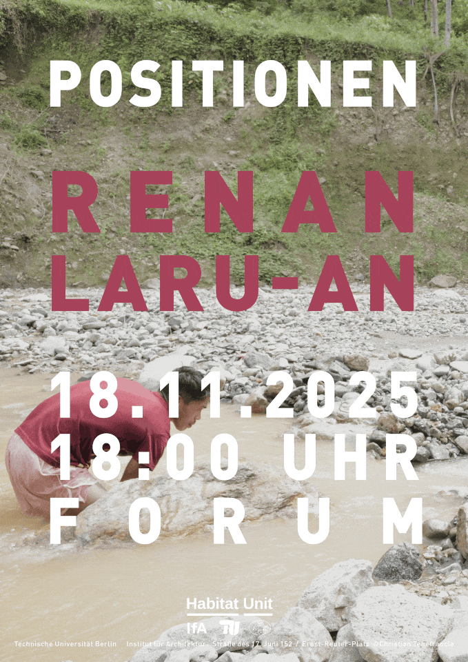 POSITIONEN Renan Laru-An Wir möchten euch herzlich zu unserer nächsten Veranstaltung der Positionen Reihe einladen - Am 18. November um 18:00 Uhr. RENAN LARU-AN / 18.11.2025 / 18:00 Uhr / TU Berlin / Forum