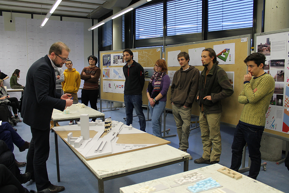 Zum Abschluss des zweiten Seminarblocks Präsentierten die Studierenden am Freitag, den 15.01.16, den Stand Ihrer Projekte in einer Zwischenpräsentation. Modelle und Zeichnungen des Entwurfsstandes zeigten die spezifischen räumlichen Qualitäten und Aspekte des besonderen Wohnens auf.