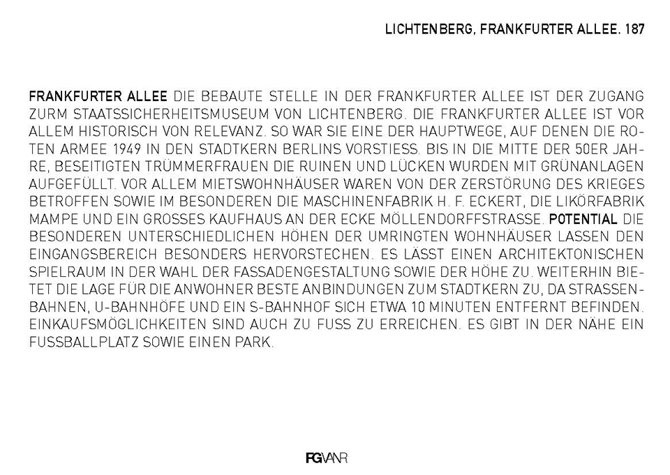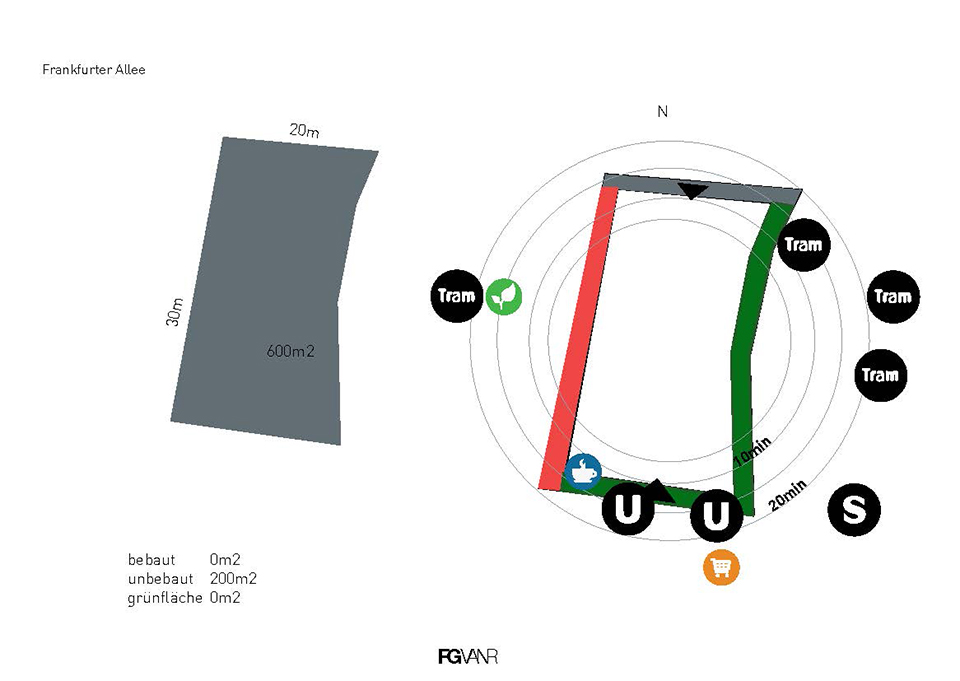1.2 Berlin Register Erforscht euren Stadtt eil und entdeckt Orte mit Potenzial für einen architektonischen Eingriff. Ein Ort muss nicht ein leeres Grundstück sein! Findet pro Gruppe je einen freien und einen belegten Ort (Bestandsgebäude, Bestandsfunktion)! Denkt auSS erhalb des Blocks, überrascht euch selbst und begebt auch auf Berlin- Scouting. Sammelt in einer schnellen städt ebaulichen Analyse so viele Informationen wie möglich, um eure Postkartenvorlage auszufüllen.