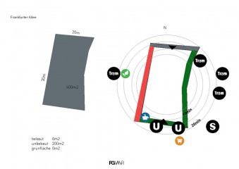1.2.4 Site – Facts: Wie groSS ist euer Ort? Wie viel Fläche ist bebaut/unbebaut/ grün? Was sind die Hauptzugänge und wie funtioniert die Durchwegung? Wie weit entfernt liegen öffentliche Verkehrsmittel und/oder Besonderheiten im Kiez?
